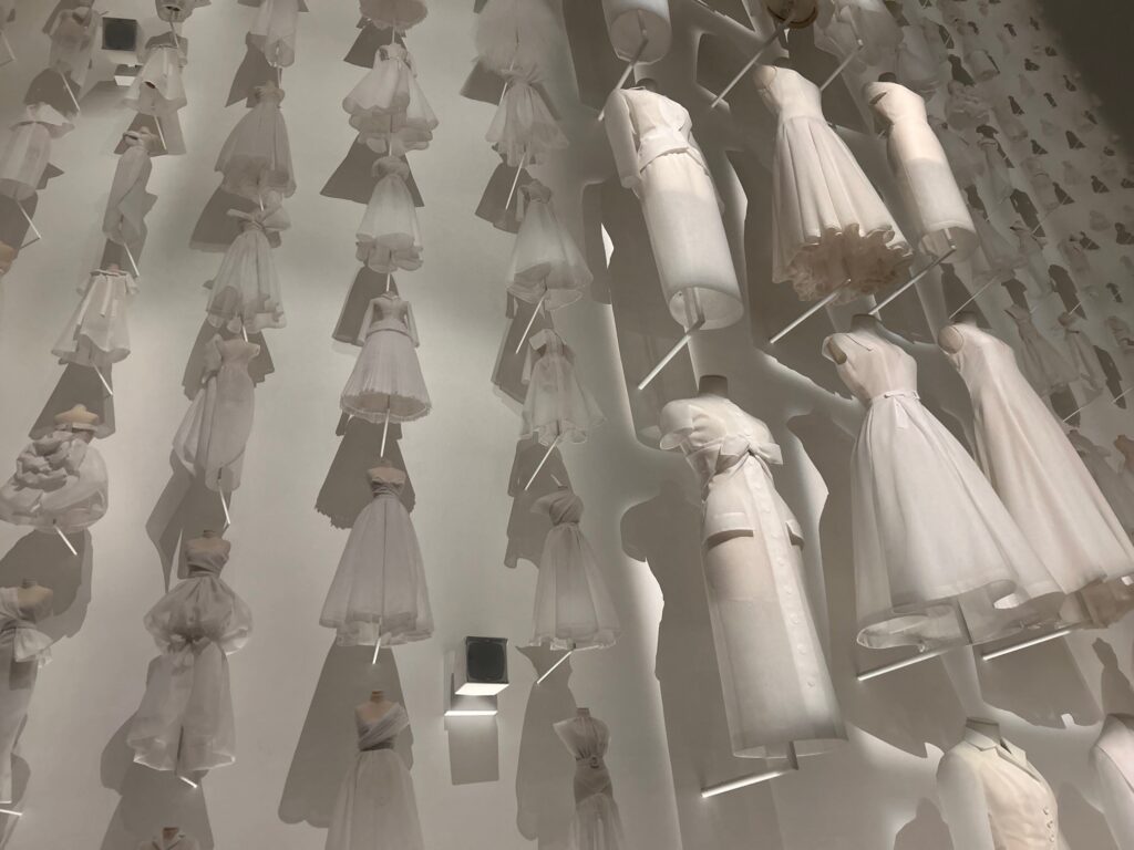 ディオールの約400点もの“白いトワル(仮縫い服)が小さいものから大きいものまで壁一面に展示されていて素敵でした。