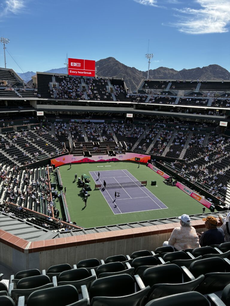テニス会場はロサンゼルスから車で3時間くらいなので、会場近くのホテルに泊まり翌日の朝いよいよインディアンウェルズの会場へ。